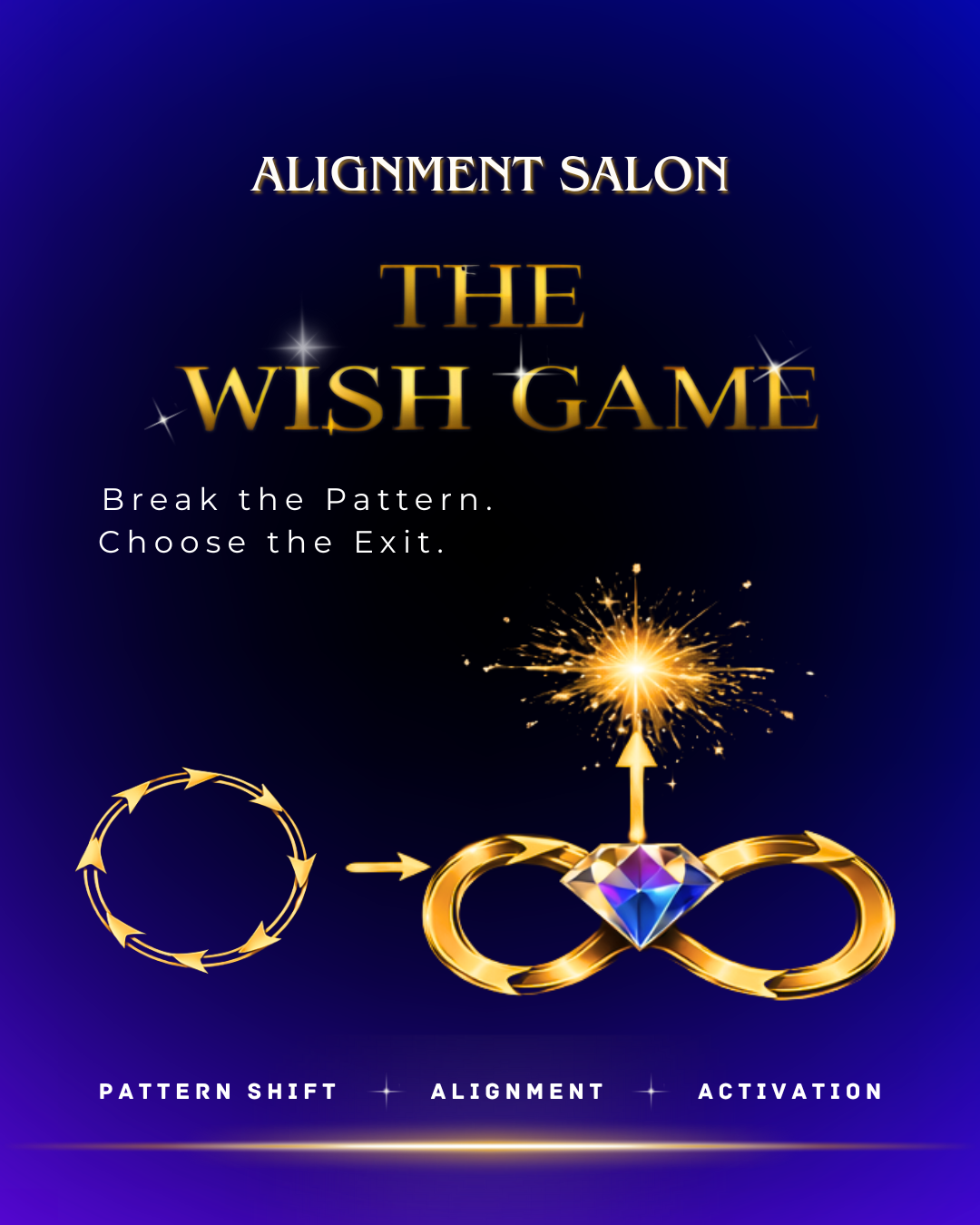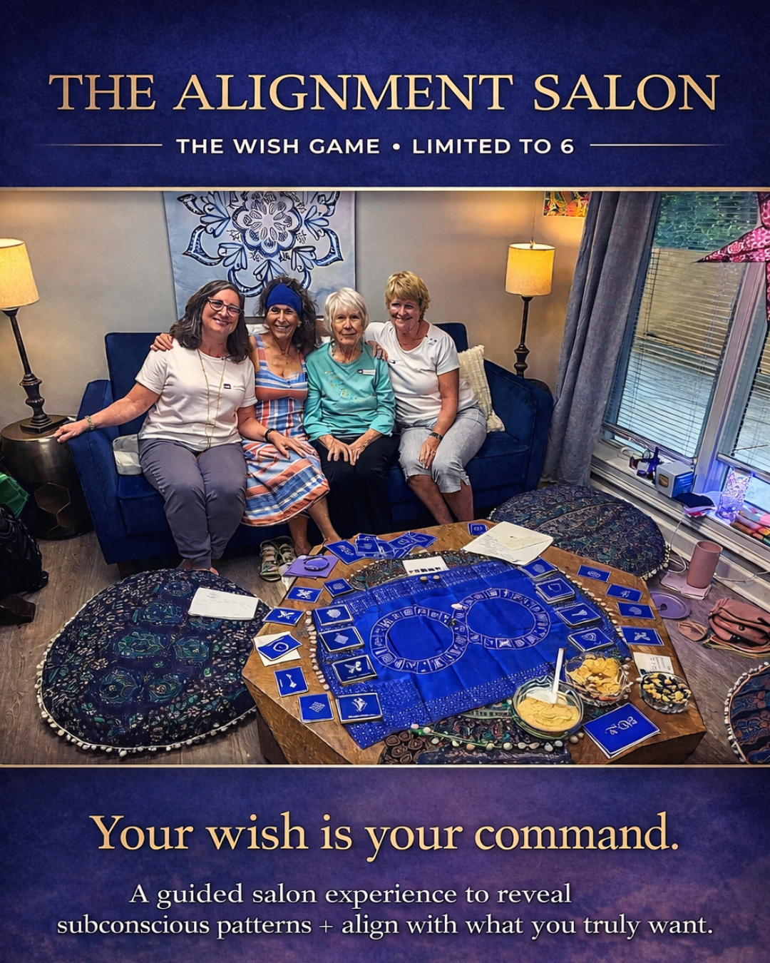 The Private Alignment Salon brings The Wish Game directly to you — a guided group experience where patterns reveal themselves and new perspectives emerge.